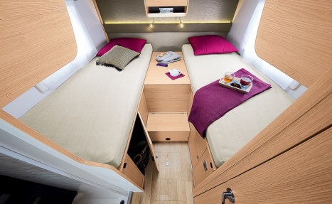 Lors de la recherche d’un camping-car familial, les lits jumeaux ne font pas toujours partie de la sélection. Pourtant ils disposent de nombreux atouts. La chambre arrière de l’intégral JC740 dispose de deux lits jumeaux de 80 cm de largeur.
